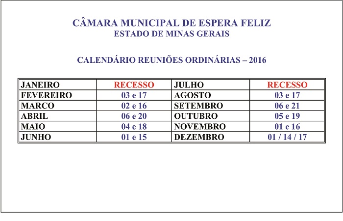 Calendário da Sessão 2016